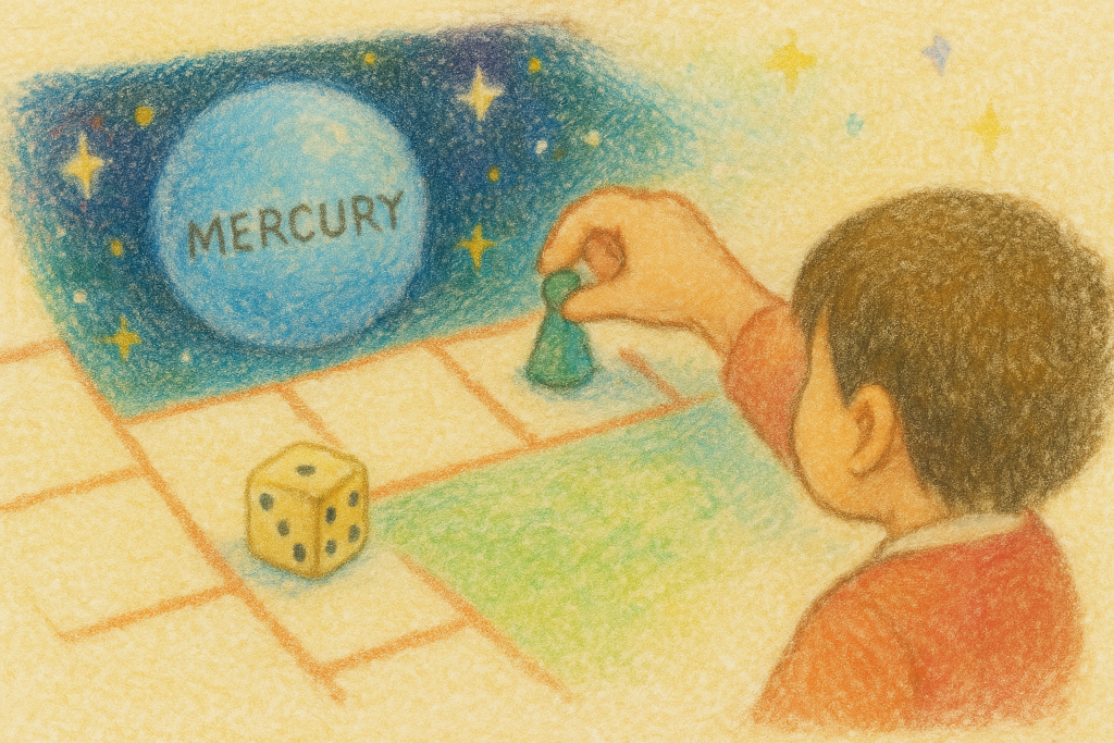 水星へ三マスで着く絵双六すいせいへさんますでつくえすごろく